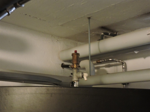 On remarque les tuyaux non isolés qui perdent depuis des années. Un classique d'installation. Ce n'est pas l'installateur qui paie l'énergie, ici bois et à présent solaire, perdue dans la chaufferie, mais le propriétaire via sa facture bois, évidemment encore plus élevée si il y a perte de solaire aussi. 100 | | Groupe solaire. Isolé lui. Obligé : c'est dans le cahier des charges standard. 105 | | 110 | | 115 | | 120 | | Origine aussi. Groupe de sécurité pas mené à l'évacuation. 125 | | Comment peut-on faire pour rattraper les mauvaises conceptions d'accumulateur. Ici l'absence d'un serpentin solaire en haut qui non seulement prive de pouvoir faire de la charge en stratification pour la priorité ECS. Mais aussi qui prive de la possibilité de décharger l'été un volume suffisant la nuit pour éviter à l'accu d'atteindre 95°C dès avant midi le lendemain, ce qui arrête alors la charge solaire et fait que les capteurs partent en stagnation. Un grand classique de l'installation cheap des années 90-2000, par les plus autoproclamés professionnels installateurs en solaire thermique de l'époque !