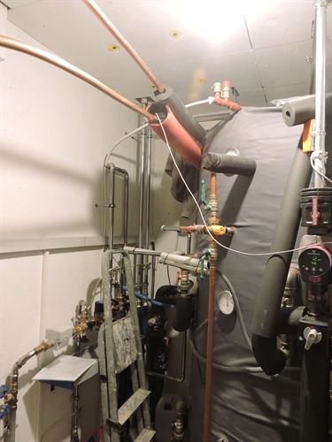 Arrivée des lignes solaires en chaufferie. Le reste n'est pas encore réalisé au 29.10.25. Le centre régional Sebasol VS prendra des images additionnelles le momnt venu.