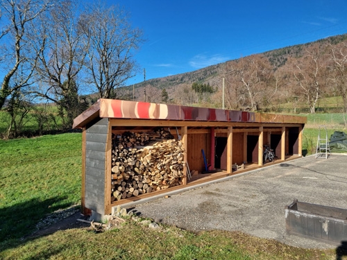| retour sur le champ, vue depuis le 5x1 à 20° qui fait toiture pour protéger le bois 135 |