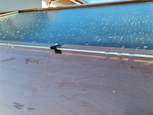 | Image de la partie verticale du champ montrant le système habituel de pose en tuilage qui mêne l'eau en bas. Il n'y a a pas d'eau qui peut pénétrer dans le capteur. 195 |