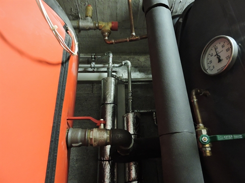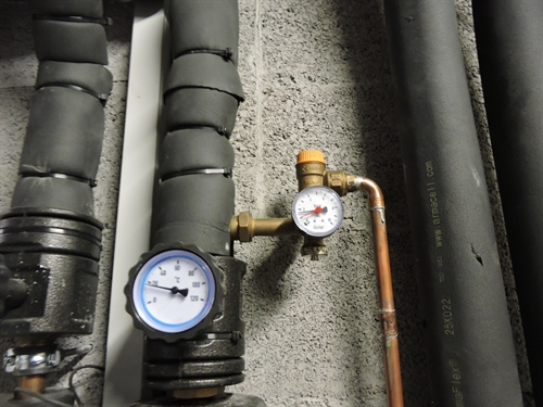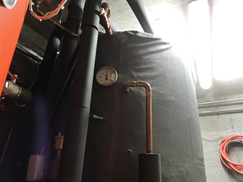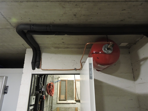 | Le vase d'expansion solaire, juste au dehors du local sur la porte, car il y a peu de place dedans 105 |