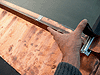 | Détail du rail alu latéral avec son joint caoutchouc, le rail collecte le ruissellement latérale et doit donc sortir du champ. A droite la ferblanterie vient se poser sur le rail avec en intermédiaire un bande caoutchouc pour éviter des problèmes de corrosion et à gauche c'est la vitre du champ qui pose directement sur le rail. La vitre « dépasse » aussi pour permettre la goutte, le carrelet du fond avait été biseauté à 45°. La ferblanterie du fond passe sous la vitre, une fois le champ posé. Notez le silicone sous les crochets pour éviter des remontées d'eau par capillarité. 0 |