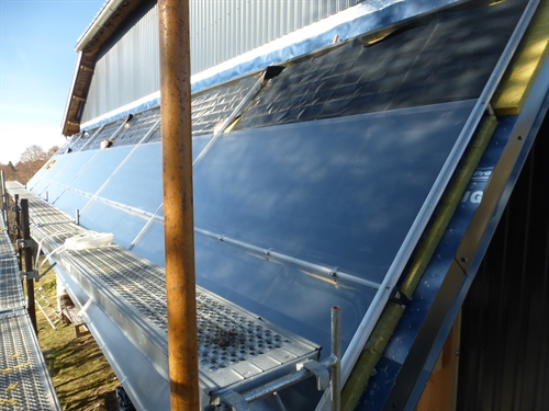 Guy (39310 Les Molunes) 22.5m2 ECS et appoint chauffage, support contre facade, distribution, chaudière bûches, rénovation