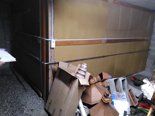 | C'est ici que les deux accumulateurs en satellite sont mis. Derrière la paroi il y a de l'isolation, ceci parce que c'est le garage et que ce dernier n'est pas hors-gel. Les accumulateurs sont donc mis dans un box isolé gardé hors-gel par leurs (minimes) pertes. Le groupe hydraulique est à l'étage. 10 |