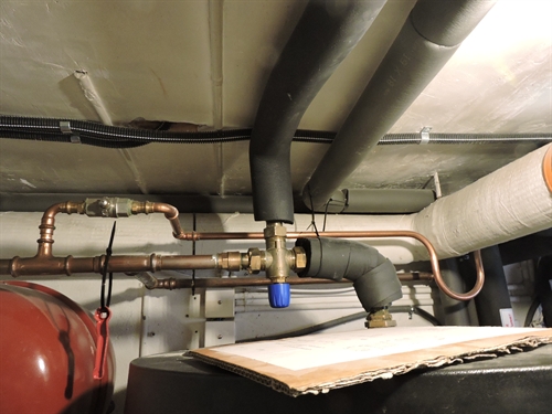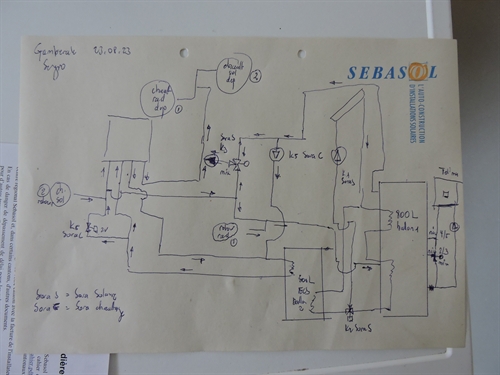 | Extension d'une installation ECS de 6m2 avec chauffe-eau de 500L de 2009 et appoint bois hydro à 12m2 en ECS et appoint chauffage et ajout de 800L de stockage supplémentaire. Reconversion de l'appoint hydro pour l'appoint chauffage également. Reprise des distributions. Un travail que seul un installateur agréé Sebasol sait faire. |