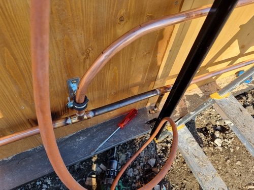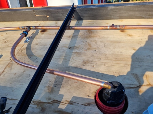 | Pour ce résultat. Toujours une gueule d'enfer. On voit aussi les siphons anti-thermosiphon sur le solaire. Au mer derrière on devine le groupe solaire. 210 |