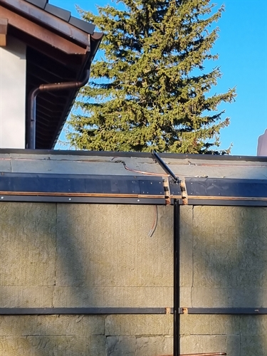 | Image de la partie verticale du champ montrant le système habituel de pose en tuilage qui mêne l'eau en bas. Il n'y a a pas d'eau qui peut pénétrer dans le capteur. 195 |