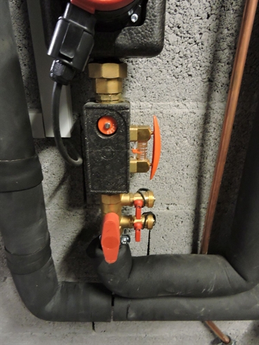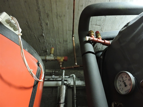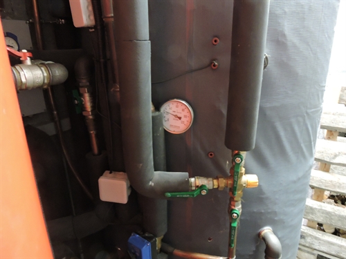 | Le vase d'expansion solaire, juste au dehors du local sur la porte, car il y a peu de place dedans 105 |