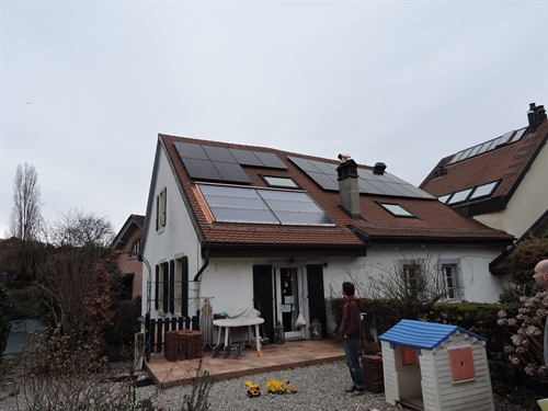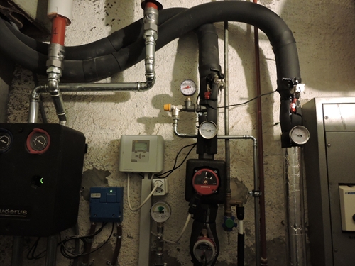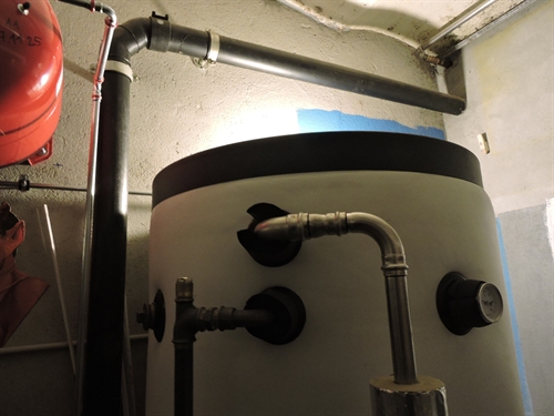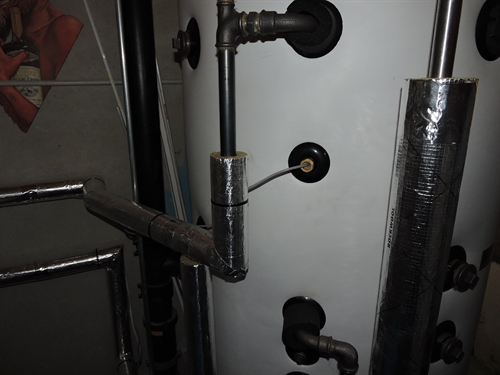 | Une installation de André Gabioud, Atelier LTC. Pour l'instant que de l'ECS, mais l'accu combiné permet l'extension en appoint chauffage à futur. Le brassage avec le chauffe-eau existant de 300L permet d'augmenter l'autonomie sans avoir besoin de débrancher la chaudière à gaz pour la rebrancher sur le spira. |