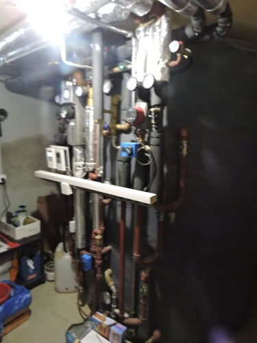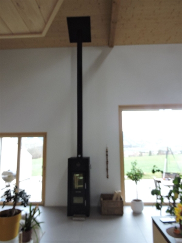 | Une réalisation de Guy Dafflon, capteurs sur support, classique solaire thermique et très peu de bois, habitat neuf. |