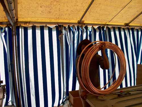 | Ailleurs, on apprend les bases de la brasure et de la fabrication des capteurs. Ici, ce jeune prépare des manchons de 76 qui serviront à la construction du by-pass en chaufferie 0 |