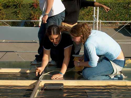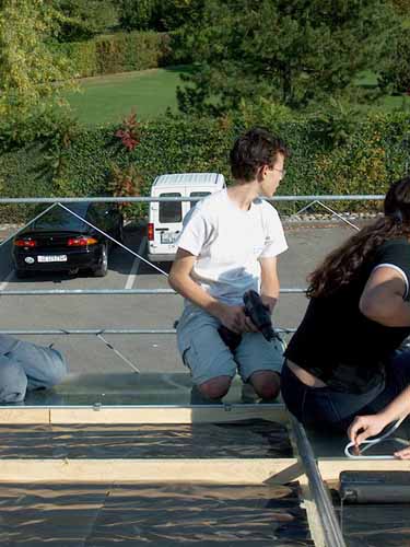 | Sergio Mazzone, responsable technique et organisateur de ce camp, installateur aggréé Solar Support, en pleine réflexion ferblantesque. 0 |